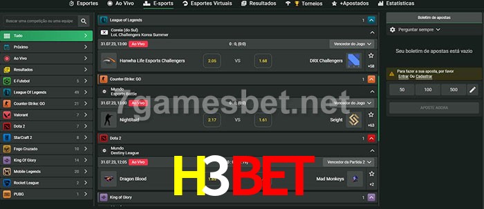 O H3Bet oferece uma grande seleção de opções de apostas em e-sports com probabilidades competitivas